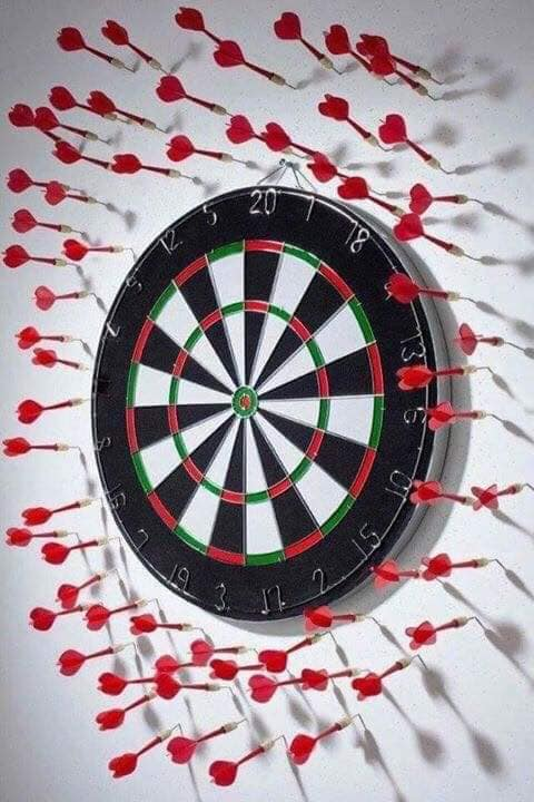 Probeer je steeds te concentreren op een bepaald deel van jouw doel, of het nu een triple, een dubbel of zelfs een single is. Als je pijlen boven je doel in het bord komen, probeer dan via het bovenste gedeelte v het midden van je flight te richten om zo iets lager in het bord te komen - als je pijlen onder je doel in het bord komen, richt je dan op het onderste gedeelte van het midden van de flight om je pijl net iets hoger in het bord te krijgen.